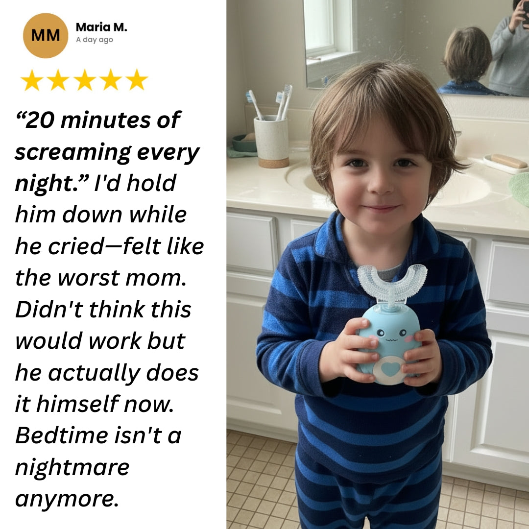 No more scrubbing one tooth at a time. No more 10-minute battles. They bite down, you guide it side to side, and bedtime gets easier.